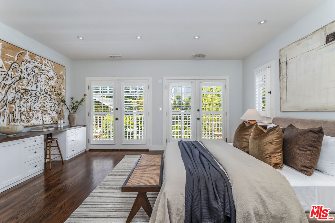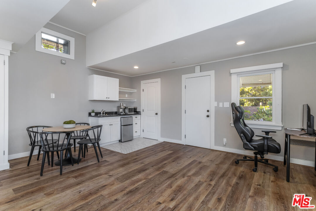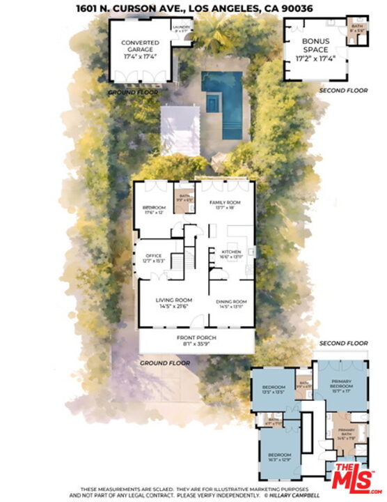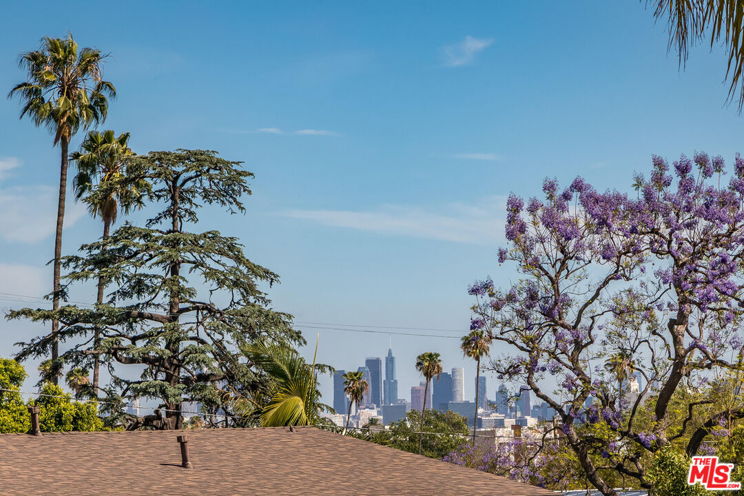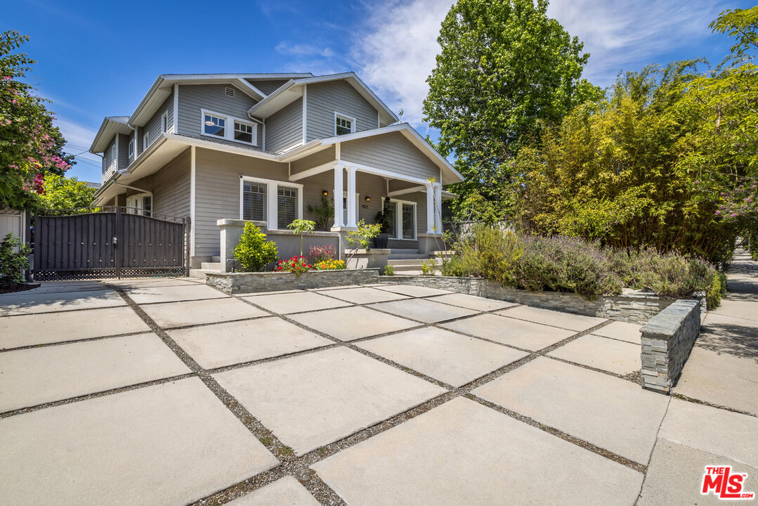 Set in the heart of historic Sunset Square, this extensively renovated Craftsman-inspired residence offers 3,331 sq ft of thoughtfully designed living on an expansive 7,561 sq ft lot. Timeless architectural character meets modern luxury in this rare 5 BD, 5 BA home in one of Hollywood's most coveted neighborhoods. A welcoming front porch opens to a two-story foyer, leading to a formal living room, dining room, and dedicated office, all anchored by high ceilings, rich hardwood floors, and classic detailing. The beautifully updated kitchen, featuring marble countertops, custom cabinetry, pantry and Viking appliances, flows into a generous family room, with French doors opening to the lush backyard for seamless indoor/outdoor living. Upstairs, the primary suite enjoys a private balcony, walk-in closet, and bath with soaking tub and shower. Three additional en-suite bedrooms complete the top level. A detached two-story converted garage adds exceptional versatility with a bonus recreation room and a separate studio apartment with kitchenette above. The private backyard is an entertainer's dream with a covered veranda, sparkling pool and spa, and a curated culinary garden with mature citrus, avocado, blueberries, and fresh herbs that brings farm-to-table living to your doorstep. Ideally located minutes from premier dining, boutique shopping, and scenic hiking trails .