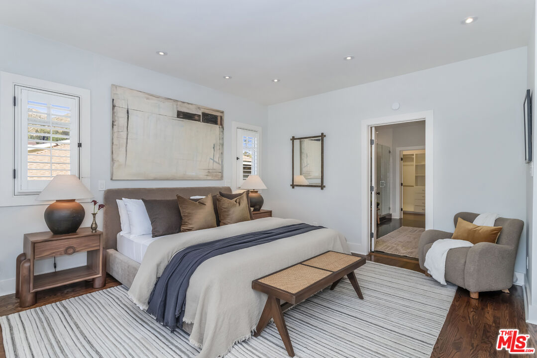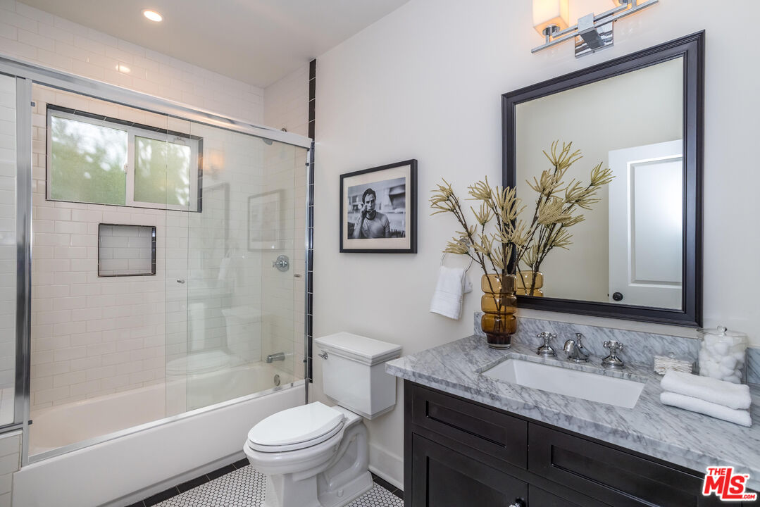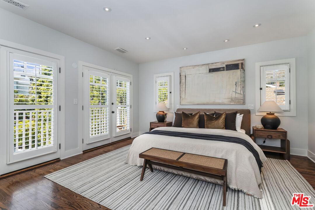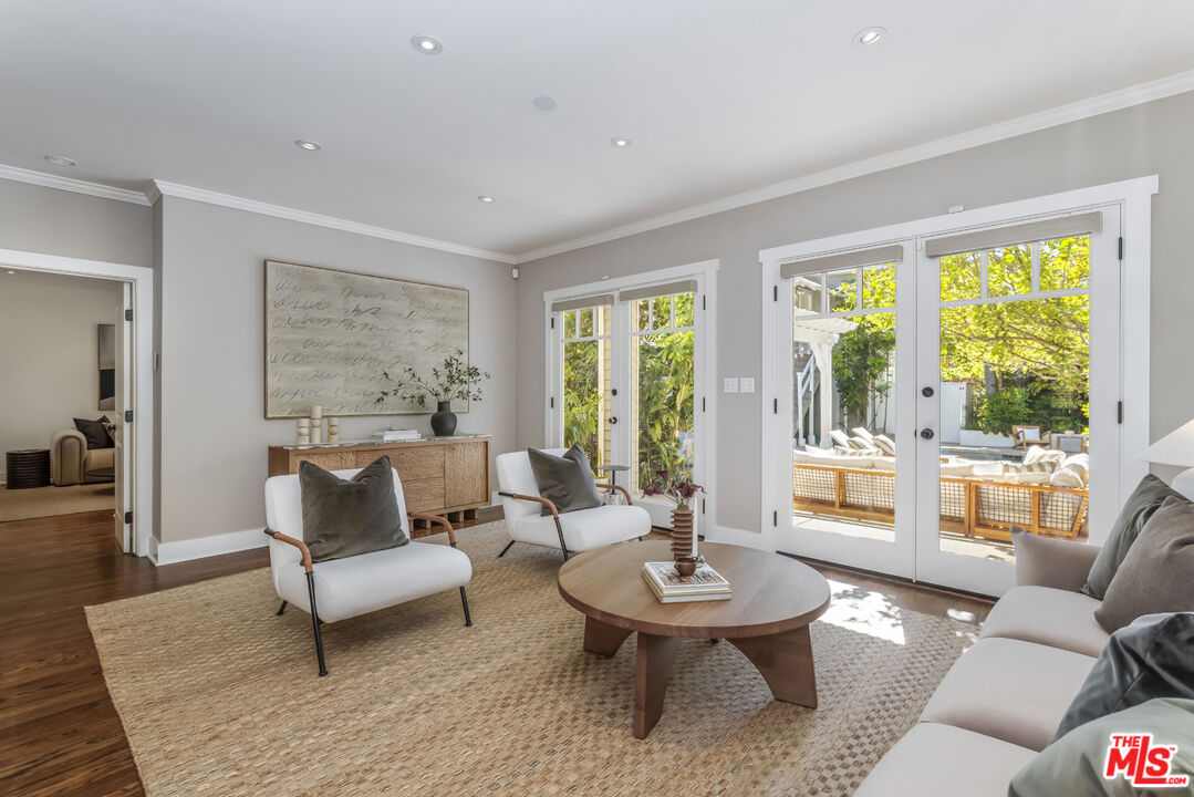 Set in the heart of historic Sunset Square, this extensively renovated Craftsman-inspired residence offers 3,331 sq ft of thoughtfully designed living on an expansive 7,561 sq ft lot. Timeless architectural character meets modern luxury in this rare 5 BD, 5 BA home in one of Hollywood's most coveted neighborhoods. A welcoming front porch opens to a two-story foyer, leading to a formal living room, dining room, and dedicated office, all anchored by high ceilings, rich hardwood floors, and classic detailing. The beautifully updated kitchen, featuring marble countertops, custom cabinetry, pantry and Viking appliances, flows into a generous family room, with French doors opening to the lush backyard for seamless indoor/outdoor living. Upstairs, the primary suite enjoys a private balcony, walk-in closet, and bath with soaking tub and shower. Three additional en-suite bedrooms complete the top level. A detached two-story converted garage adds exceptional versatility with a bonus recreation room and a separate studio apartment with kitchenette above. The private backyard is an entertainer's dream with a covered veranda, sparkling pool and spa, and a curated culinary garden with mature citrus, avocado, blueberries, and fresh herbs that brings farm-to-table living to your doorstep. Ideally located minutes from premier dining, boutique shopping, and scenic hiking trails .